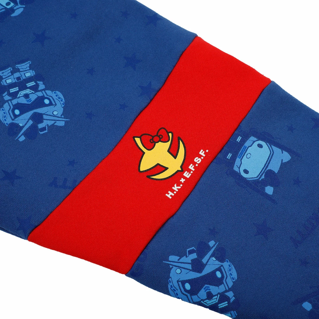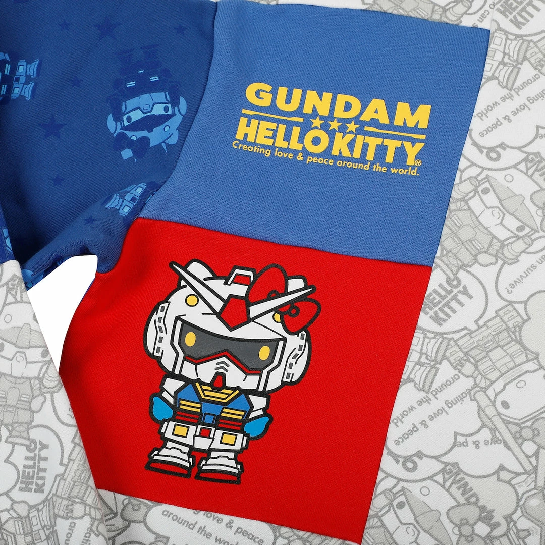 Time to suit up!Β This colorblocked hoodieΒ features a grey tonal Gundam pattern with contrasting panels of red and blue throughout.Β There’sΒ a graphic with the Hello Kitty RX-78-2 Gundam at the front with additional mobile suits on the back.