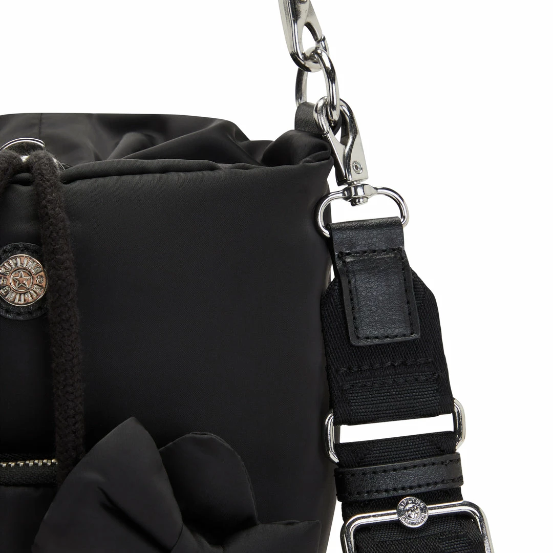 The Nylon Puffer collection is actually made with 100% recycled nylon! (Love!) With the monochromatic color and subtle sheen, we’re obsessed with how you can wear these bags on the daily. The Kyla Drawstring Bag has both a removable top handle and removable shoulder strap, so you can choose to wear it however you like!Β Β Hello Kitty’sΒ eyes, nose and whiskers are quilted into the front face while her ears and bow pop out in 3D.