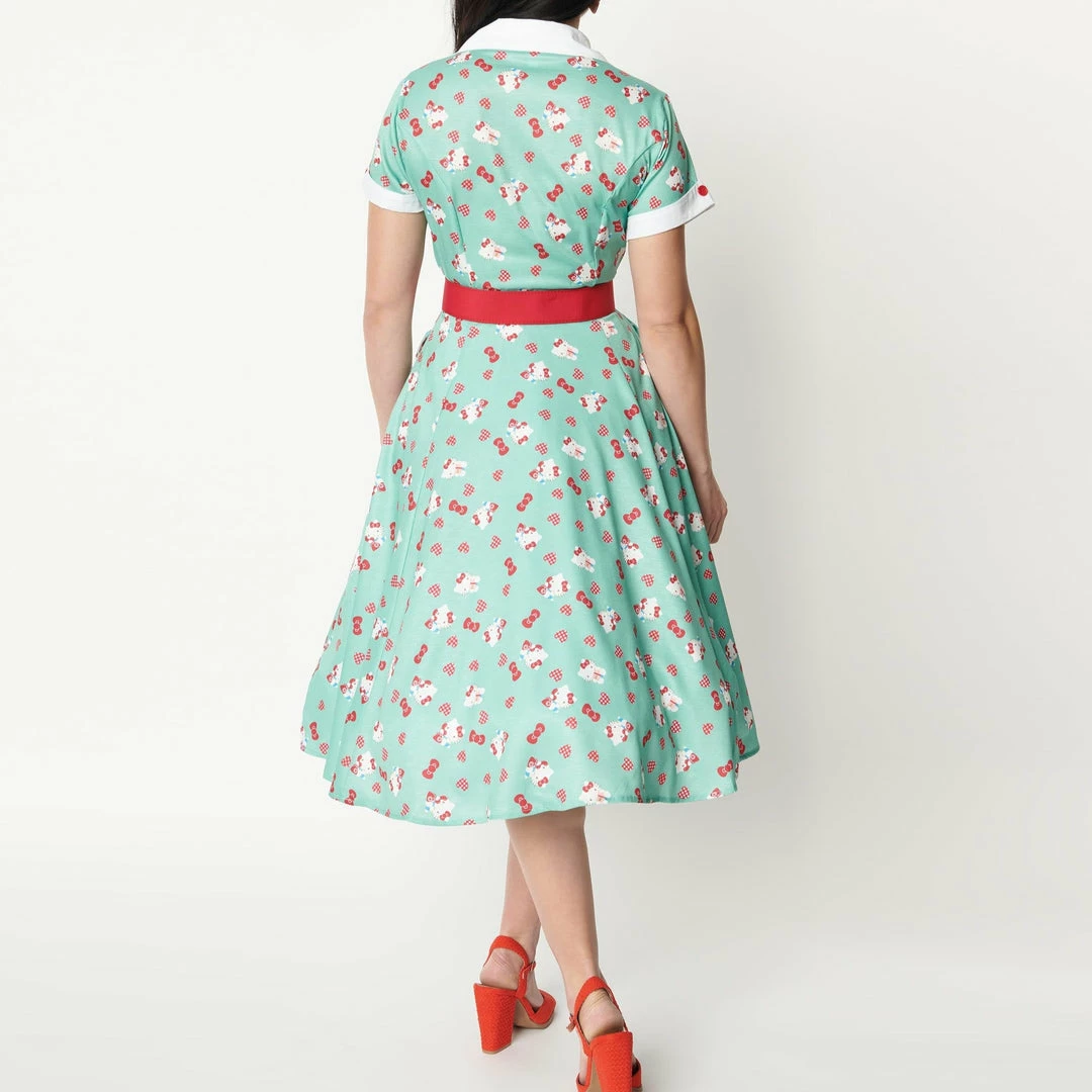 Our hearts lit up when we saw this diner-style dress with the crisp white collar, striking red belt, and gingham heart print. This dress is a partial button-front design with a sweeping skirt, seamed waist, and notched lapel.