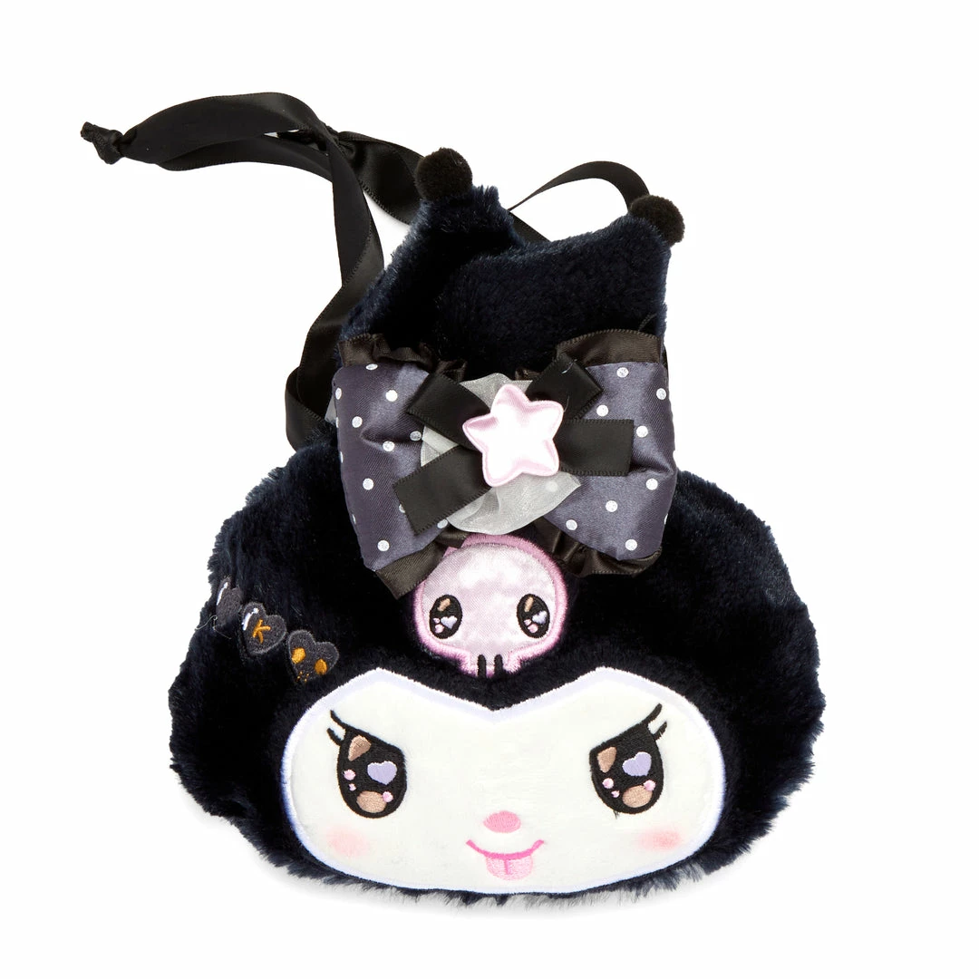 Keep your trinkets in this adorable drawstring bag. It has Kuromi’s ears tied together as if in a ponytail and finished with a polka-dotted black bow. Her eyes have little hearts and she sticks out her tongue in a cheeky smile!