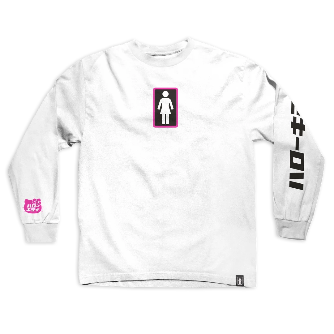 A simple white long-sleeve to wear whenever! It has the small GIRL logo at the center withΒ Hello Kitty on the right wrist and text on the left arm.