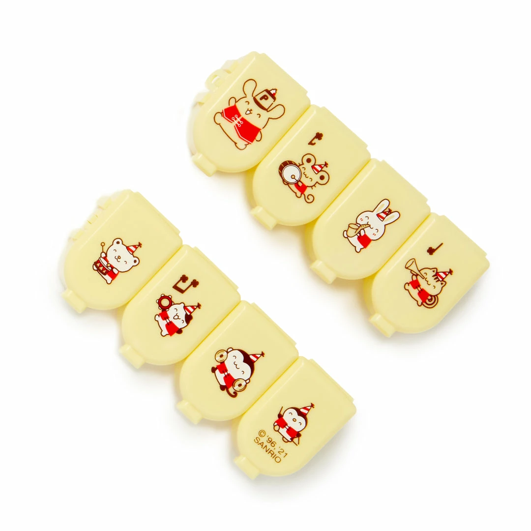 Remember to take your daily vitamins with this adorable pill case featuring Pompompurin and his marching band of friends! Each case is interchangeable and can be separated and locked together to suit your own schedule.Β