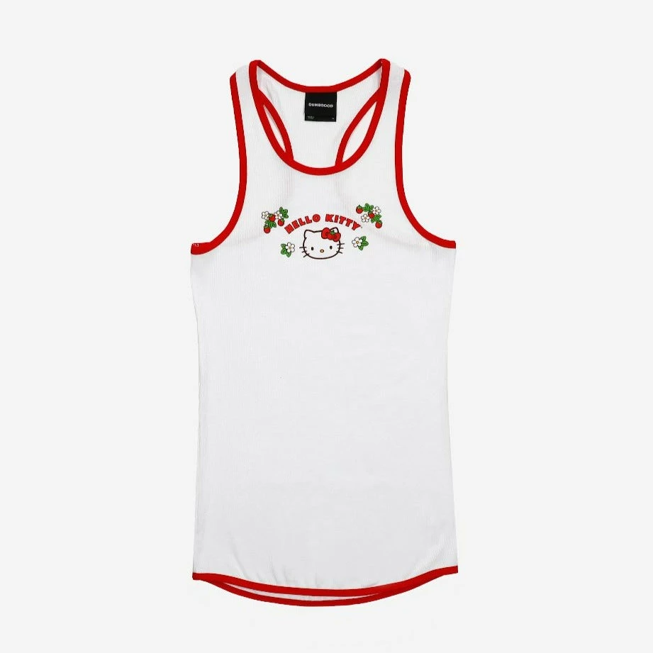 Similar to an OG ringer tee, this racerback tank has red trim all along the neck and armholes as well as the bottom hem. The classic white ribbed knit is super familiar and finished with a cute printed graphic.