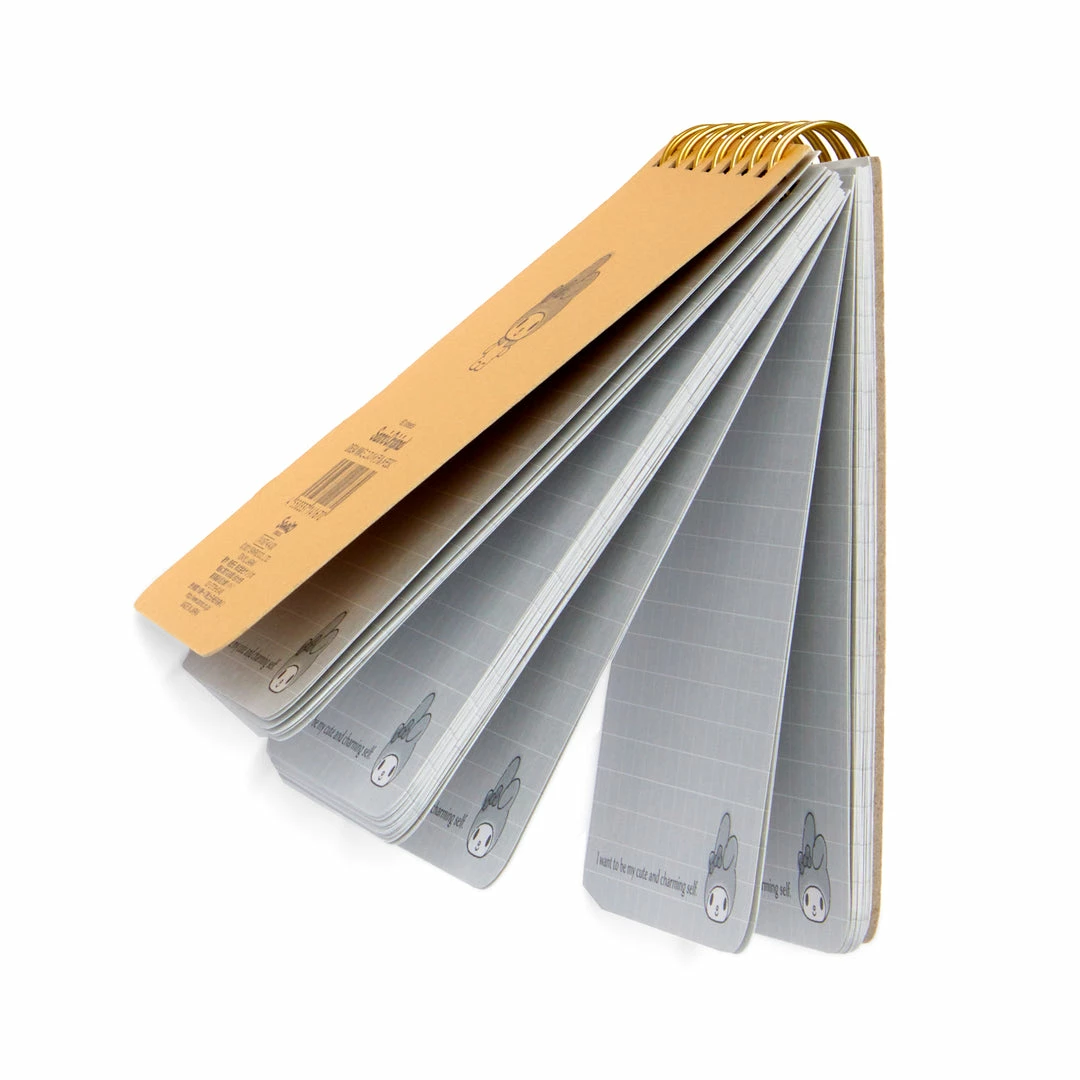For our more minimal stationery connoisseurs, the Smokey Colors series has a solid colored design with your favorite character and the quote, “I want to be my cute and charming self.” Aww! This spiral-bound memo pad is lined with a grid print for writing or doodling. Fill up all 60 pages with your thoughts and wishes!