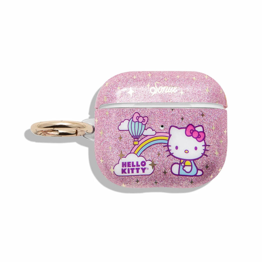 Bring a little sparkle into your life with the Hello Kitty Rainbow AirPods case. With pinkish-violet glitter, gold foil stars and a rainbow graphic, you’ll shine on day or night! Use the snap hook to attach your case somewhere securely.