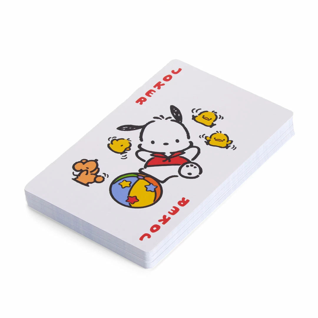 Draw 5 and let the games begin! ThisΒ jumbo set of playing cards features Pochacco! He dons a variety of costumes as the Jack, Queen, and King and looks just plain cute throughout the rest of the deck. Invite your friends over for a night of classic card games!