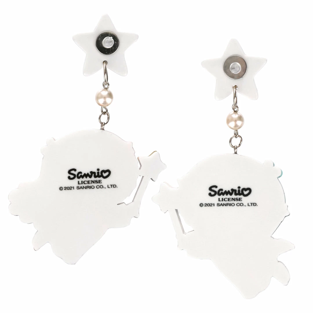 Give your accessories some heart with these angelic earrings featuring LittleTwinStars Kiki and Lala dangling from star shaped bases. With star-shaped confetti suspended in resin, these earrings are striking and supercute all at once.