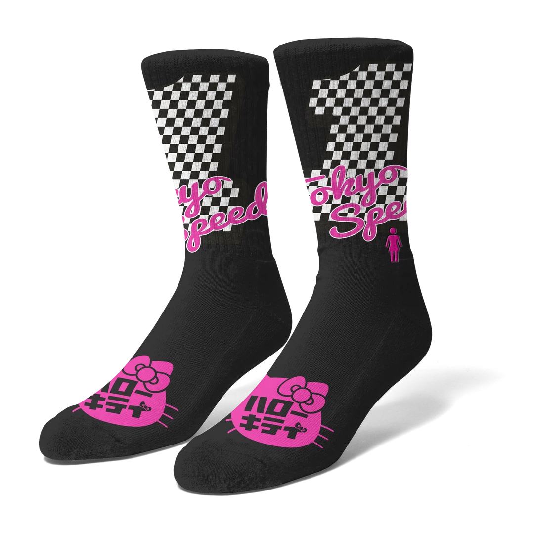 Forget the skate park.Β These socks are supercute and can be worn daily whether at home, at work, or anywhere else. Get it along with the Hello Kitty deck and apparel styles for a complete look.