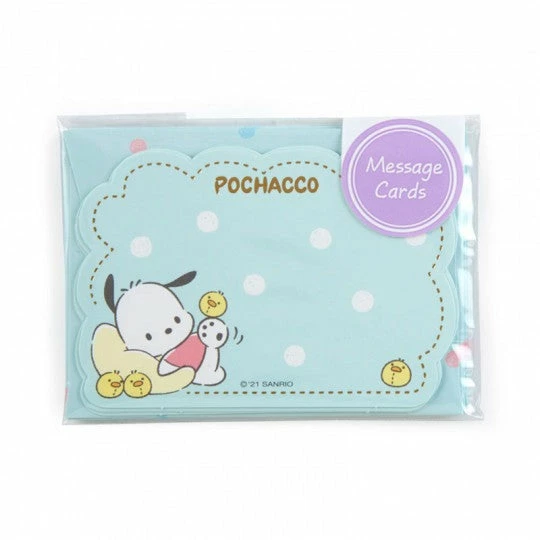 Send a little bit of sweetness with this miniature Pochacco Gilded Message Card Set. Each set includes 5 cards and envelopes featuring Pochacco napping with his friends the Pi-chans, and finished with a touch of gold.Β