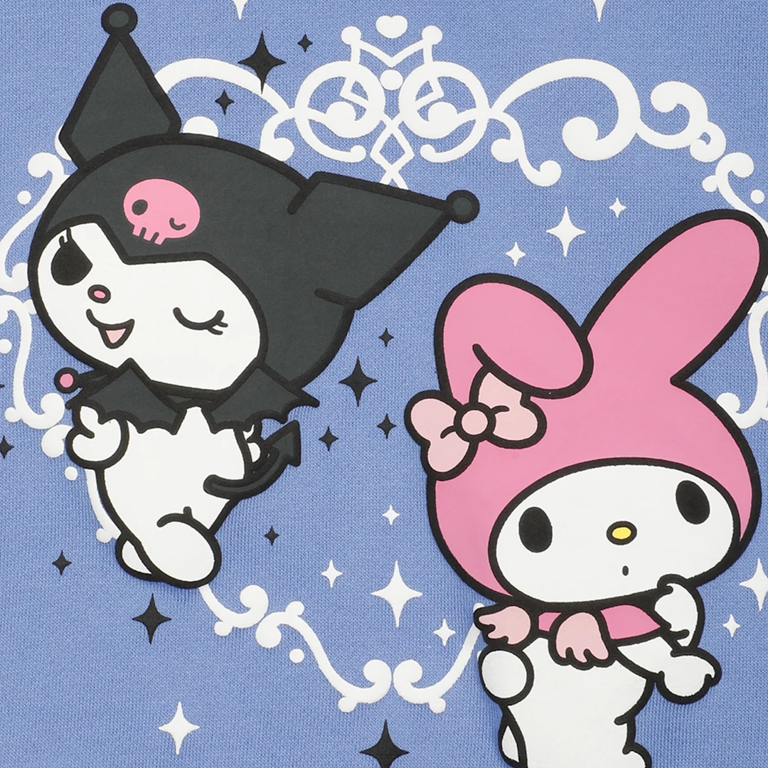 With Kuromi dressed as a devil and My Melody as an angel, this cropped hoodie is giving everything we’ve ever wanted. The left sleeve has bow graphics and the right has Kuromi’s iconic skull.